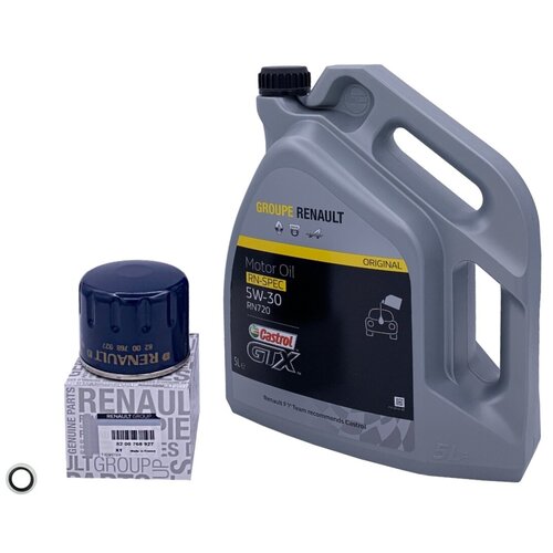 Оригинальный набор для технического обслуживания автомобилей Renault Duster 1,5 K9K (дизель). В состав набора входит все, что необходимо для замены масла на вашем Renault:- Моторное масло RENAULT CASTROL GTX RN-SPEC RN 0720 5W-30 (5 л) 7711943687 (для а\м с сажевым фильтром).- Фильтр масляный оригинальный 8200768927.- Уплотнительное кольцо сливной пробки поддона двигателя.- Подробная инструкция по самостоятельной замене масла в двигателе.Удобно - все детали приходят одновременно в ближайший к Вам пункт выдачи.Выгодно – комплектом дешевле.Проверено – все запчасти из комплекта мы опробовали на собственных сервисных станциях в Москве и Петербурге. Гарантируем качество и идеальную совместимость с вашим автомобилем!