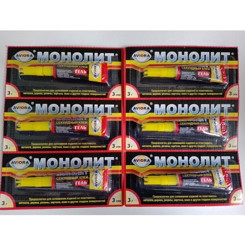 Универсальный секундный клей-Гель Aviora, 6 штук в упаковке.Клей-гель Aviora - это суперклей, который быстро склеивает любые поверхности. Он не растекается и не капает, что позволяет использовать его даже на вертикальных поверхностях. Преимущества:- Быстрое схватывание (1 минута)- Водостойкий и прозрачный- Не растекается и не капает- Можно использовать для внутренних и наружных работ- Однокомпонентный и готовый к использованиюПрименение:1. Очистите поверхности от грязи, пыли и жира.2. Нанесите клей тонким слоем на обе поверхности.3. Скрестите поверхности и удерживайте их в течение 1 минуты.4. Дайте клею полностью высохнуть (до 1 часа).5. После высыхания клей становится водостойким и прозрачным.В упаковке 6 штук клея-геля Aviora по 3 грамма каждый. Каждый тюбик имеет удобный колпачок для нанесения и хранения клея. Клей-гель Aviora является идеальным выбором для тех, кто ищет быстрое и надежное средство для склеивания различных материалов.