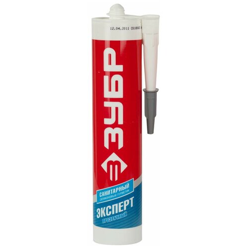 ЗУБР Герметик силиконовый ЗУБР "эксперт" прозрачный, санитарный, для помещений с влажностью, 260 мл