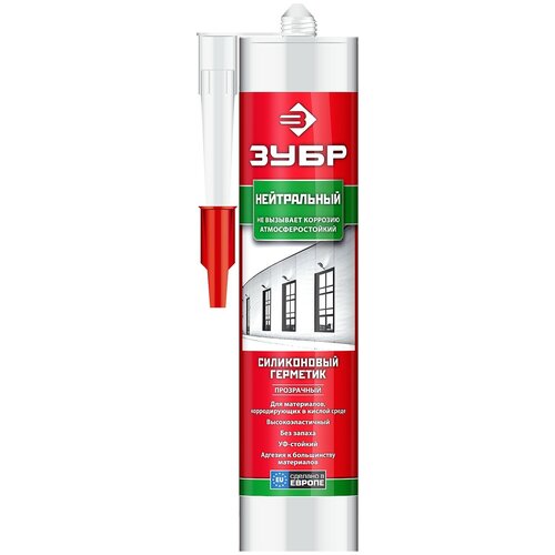 ЗУБР 280 мл, прозрачный, нейтральный силиконовый герметик (41237-2)