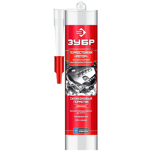 Силиконовый нейтральный герметик ЗУБР Мотор 280 мл t+250 красный 41245-5