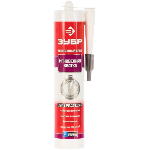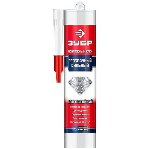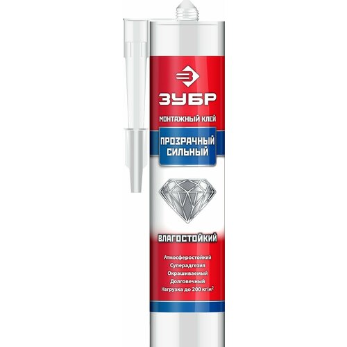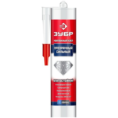 Зубр Клей монтажный Зубр "эксперт" Км-250, суперсильный, прозрачный, 300мл 41332 .