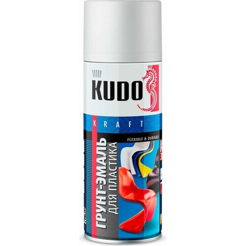 Грунт-эмаль Kudo для пластика, быстросохнущая, акриловая, матовая, белая, 520 мл