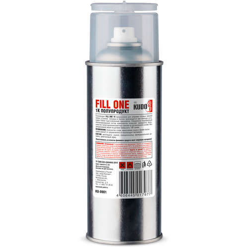 9901 Полупродукт FILL ONE 520мл KU9901 KUDO - Аэрозольный полупродукт FILL ONE 1К KUDO® KU-9901 предназначен для заправки готовых эмалей любых оттенков, подобранных по колеру по требованиям заказчика. Специально сбалансированный состав компонентов позволяет заправлять любые типы однокомпонентных эмалей на органической основе. Вес заправляемой эмали не должен превышать 100 грамм. Заправка в баллон производится при помощи установки FillOne подготовленным персоналом.
