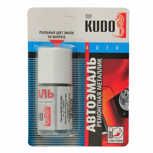 Эмаль ремонтная металлик с кисточкой 15 мл KUDO, Toyota 1F7 Ultra Silver cеребристый KU-72451