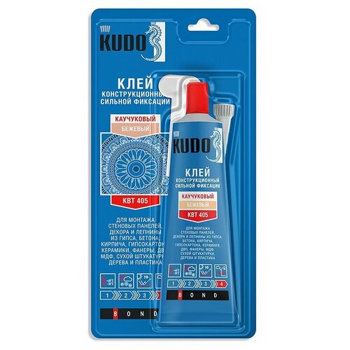 Универсальный монтажный клей сильной фиксации на каучуковой основе KUDO. Высококачественный однокомпонентный универсальный клей на каучуковой основе. Идеально подходит для ремонтных и отделочных работ. Существенно ускоряет отделочные работы, экономичен и прост в использовании. Характеризуется высокой первоначальной силой схватывания. Тиксотропный, не стекает с вертикальных поверхностей. Не содержит агрессивных растворителей, пригоден для склеивания зеркал и других изделий из деликатных материалов. Химически нейтральный, не вызывает коррозии металлов. Преимущества: -Превосходная адгезия к металлу, дереву, бетону, кирпичу, камню, гипсокартону, пластику и другим строительным материалам. -Устойчив к нагрузкам и вибрациям, имеет широкий температурный диапазон эксплуатации. -Не содержит агрессивных растворителей и кислот, не вызывает коррозии. -Экономичный расход.