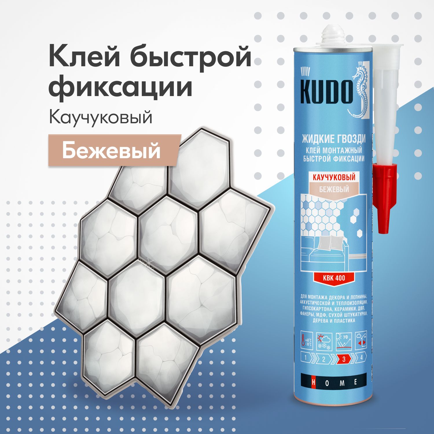 Клей монтажный быстрой фиксации Kudo KBK 400, каучуковый, 300 мл, бежевый
