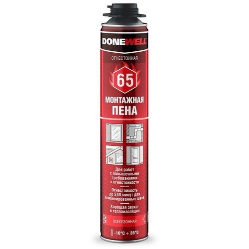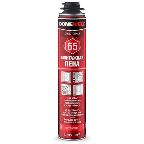 Пена монтажная профессиональная Donewell 65, огнестойкая, всесезонная, 1000 мл