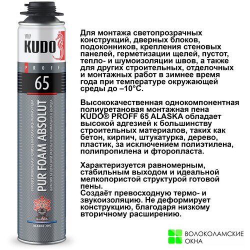 Пена монтажная профессиональная Kudo Proff 65 Alaska, зимняя, 1000 мл