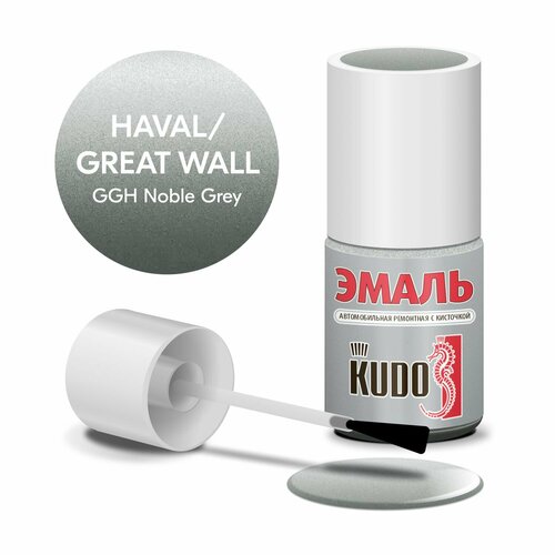 Эмаль автомобильная KUDO ремонтная с кисточкой, Подкраска сколов и царапин для авто, Эфиро-целлюлозная, Great Wall GGH NOBLE GREY металлик
