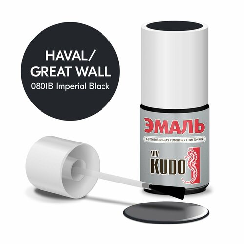 Эмаль автомобильная KUDO ремонтная с кисточкой, Подкраска сколов и царапин для авто, Эфиро-целлюлозная, Great Wall 0801B IMPERIAL BLACK