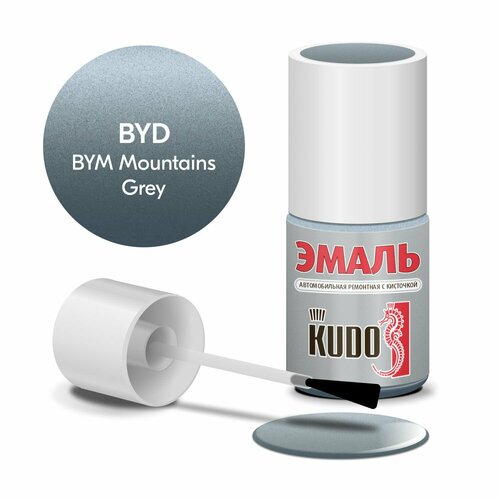 Эмаль автомобильная KUDO ремонтная с кисточкой, Подкраска сколов и царапин для авто, Эфиро-целлюлозная, BYD BYM MOUNTAINS GREY металлик