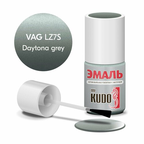 Эмаль автомобильная KUDO ремонтная с кисточкой, Подкраска сколов и царапин для авто, Эфиро-целлюлозная, AUDI LZ7S Daytona grey металлик