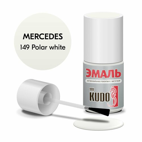 Эмаль автомобильная KUDO ремонтная с кисточкой, Подкраска сколов и царапин для авто, Эфиро-целлюлозная, MERCEDES 149 Polar white