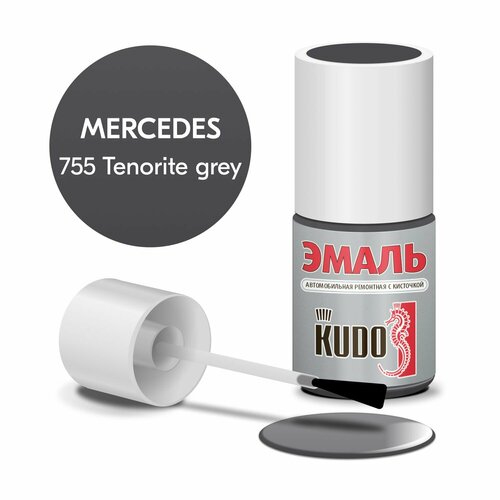 Эмаль автомобильная KUDO ремонтная с кисточкой, Подкраска сколов и царапин для авто, Эфиро-целлюлозная, MERCEDES 755 Tenorite grey