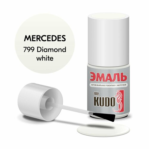 Эмаль автомобильная KUDO ремонтная с кисточкой, Подкраска сколов и царапин для авто, Эфиро-целлюлозная, MERCEDES 799- Diamond white