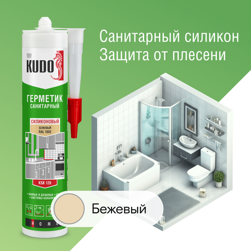 Герметик силиконовый санитарный KUDO "KSK 126", для ванной и кухни, 280 мл, бежевый