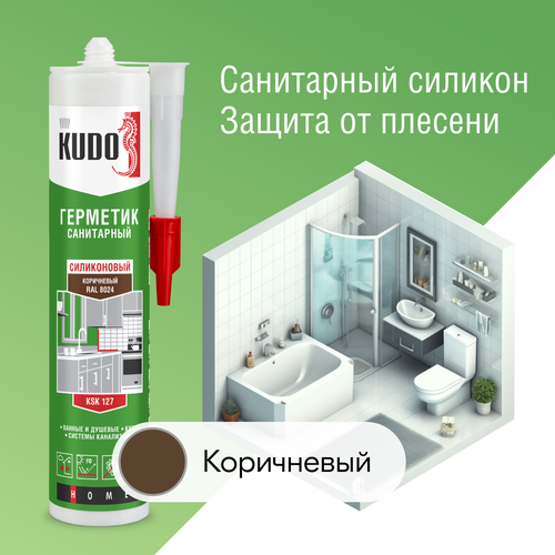 Герметик силиконовый санитарный KUDO "KSK 127", для ванной и кухни, 280 мл, коричневый