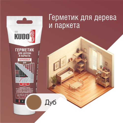 Подходит для работы с любыми деревянными материалами.Отличная адгезия к бетону, кирпичу, камню, гипсокартону, дереву, ПВХ и другим строительным материалам.Химически нейтральный, не вызывает коррозии.Высокая эластичность и деформационная подвижность.Имеет широкий температурный диапазон эксплуатации: от –60°С до +50°С.На 9,5 погонных метров при диаметре валика 5 мм.Высококачественный однокомпонентный акриловый пластоэластичный герметик KUDO® предназначен для герметизации и затирки стыков при укладке паркета, ламината и пробковых покрытий, заполнения щелей при монтаже плинтусов, наличников, деревянных оконных рам и подоконников. Применяется для уплотнения соединительных швов при отделке вагонкой и монтаже перегородок.Прекрасно подходит для устранения и маскировки дефектов на любой деревянной поверхности, где подвижность соединения не превышает 15%. Для внутренних работ.Обладает прекрасной адгезией к дереву, пробке, бетону, кирпичу, камню, гипсокартону. Паропроницаемый, стоек к плесени и грибку, не меняет цвет с течением времени. Не трескается и не крошится, отлично подходит для швов с деформацией. Химически нейтральный. Не содержит растворителей, отверждается за счёт испарения воды. Без запаха. Легко наносится и очищается, не оставляет пятен на дереве и торцах ламината. После полного отверждения можно шлифовать, окрашивать водными и синтетическими красками.ПрименениеРаботы рекомендуется проводить при температуре от +5°C до +35°C, включая температуру основания. Температура герметика +20°C…25°C.Герметик наносить на чистые, сухие и обезжиренные поверхности.Разгладить его в шве шпателем, смоченным мыльным раствором.Для очистки инструмента использовать воду, при необходимости — с добавлением чистящих средств. Излишки незатвердевшего герметика удалить при помощи влажной ткани или механическим способом.Время высыхания слоя герметика толщиной 2 мм — 48 часов (при температуре +23°C и относительной влажности 50%).Для окраски герметика рекомендуется использовать краски и лаки, эластичность плёнки которых сопоставима с эластичностью герметика. При окрашивании цветного герметика лаками необходимо учитывать, что при этом цвет герметика изменится, станет более насыщенным.