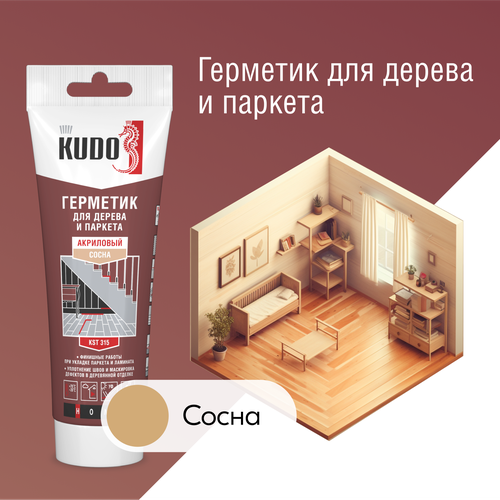 Герметик акриловый KUDO "KST 315" для дерева и паркета, тюбик 180 мл, Сосна