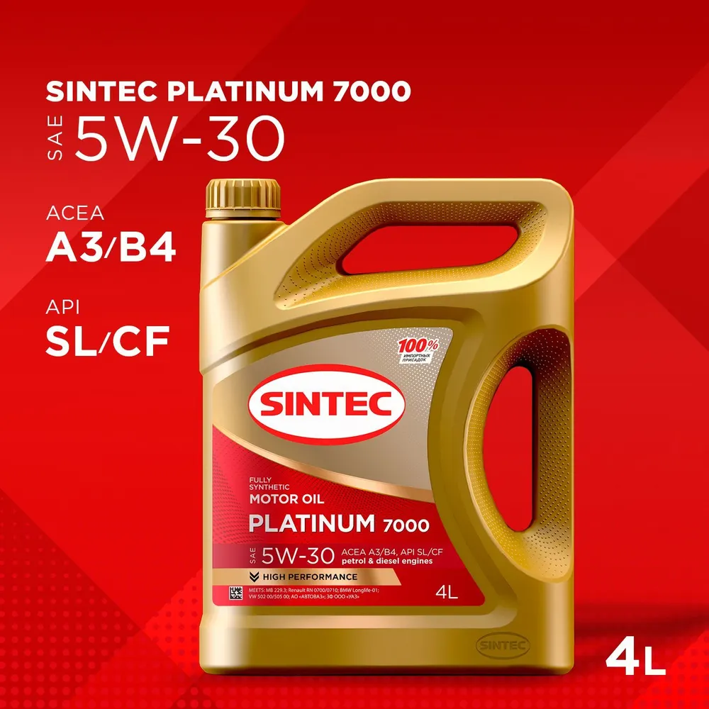 Моторное масло SINTEC синтетическое PLATINUM 7000 SAE 5W30 API SL/CF ACEA A3/B4 4л