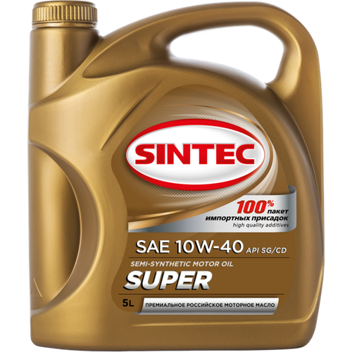 ОписаниеПолусинтетическое моторное масло SINTEC Супер 10W-40 производят с использованием высококачественных базовых масел и сбалансированного пакета присадок. Масло предназначено для смазывания бензиновых и дизельных двигателей современных легковых и грузовых автомобилей отечественного и зарубежного производства. Моторное масло обладает увеличенным сроком службы, сниженным расходом масла на угар и улучшенными антикоррозионными свойствами.Ключевые особенностистабильность вязкостно-температурных свойствмасла обладают высокими антиокислительными и диспергирующими свойствамилегкий пуск двигателя при низких температурахнадежная защита двигателя от износа и коррозии в жестких условиях эксплуатации, при соблюдении рекомендованных сроков замены маслазащищает двигатель от образования нагараПрименениев бензиновых и дизельных двигателях легковых и грузовых автомобилей российского и зарубежного производства, где рекомендованы смазочные материалы эксплуатационного класса API SG/CD (или более ранних спецификаций) и соответствующего класса вязкости: SAE 10W-40Соответствия требованиямAPI SG/CDОдно из самых популярных полусинтетических масел продаваемых в нашей компании. SINTEC Супер 10w40 имеет международную классификацию по API SG/CDКанистра объемом 5 л идеально подойдет для замены масла в двигателе объемом свыше 2л.Для удобства оптовых клиентов осуществляем поставки в заводской коробке по 4 канистры. Огромный выбор автотоваров на нашем сайте https://autohit22. ru/