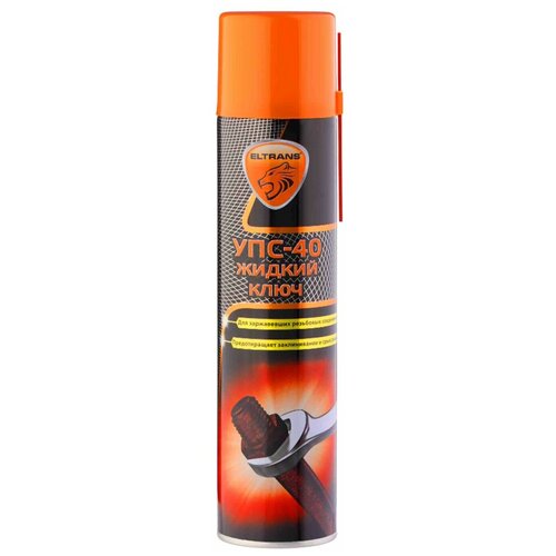 Открутить приржавевшую гайку и чтобы не нанести вред резьбе - задача не из самых простых. Для того чтобы упростить задачу откручивания, Вам на помощь придет жидкий ключ ELTRANS УПС-40Универсальное проникающее средство (УПС-40) применяется для облегчения отвинчивания резьбовых соединений всех типов, обладает высокой проникающей, пропитывающей и растворяющей способностью. Незаменимо при ремонте любых транспортных средств, применяется для сантехнических и слесарных работ. Быстро проникает внутрь ржавчины, растворяет её, возвращает подвижность и смазывает резьбовые соединения, петли, замки. Предотвращает заклинивание и срыв резьбы, устраняет скрип и заедание деталей. Аэрозольная форма выпуска облегчает обработку труднодоступных соединений. Способ применения:1. Использовать при температуре не ниже +10С. 2. Перед использованием энергично встряхнуть баллон в течение 1-2 мин. Распылить состав на обрабатываемые детали. 3. Дать впитаться в течение 15-20 мин.Преимущества: Прост в использовании; Оставляет защитную пленку; Устраняет скрипы и вытесняет влагу с поверхностей; Обладает проникающими и смазывающими свойствами; Быстро испаряется с поверхности деталей; Быстро возвращает подвижность заржавевшим деталям; Предотвращает последующие окисление деталей.
