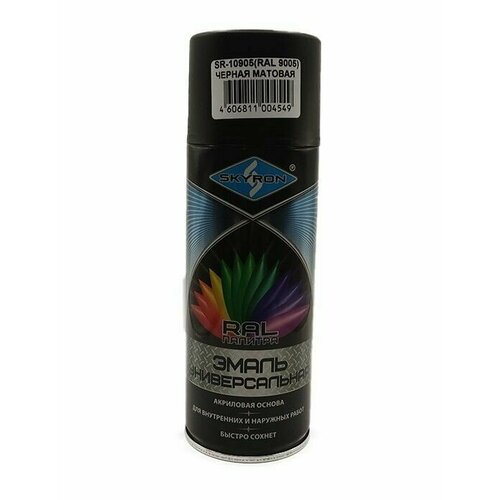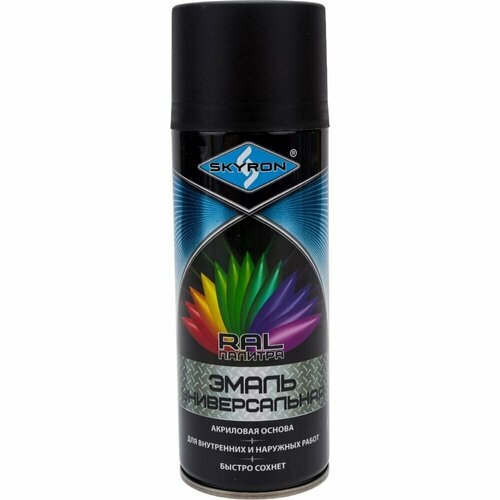 Эмаль универсальная акриловая SKYRON цвет: Черный матовый (RAL 9005 ). Аэрозоль 520мл (SR-10905)