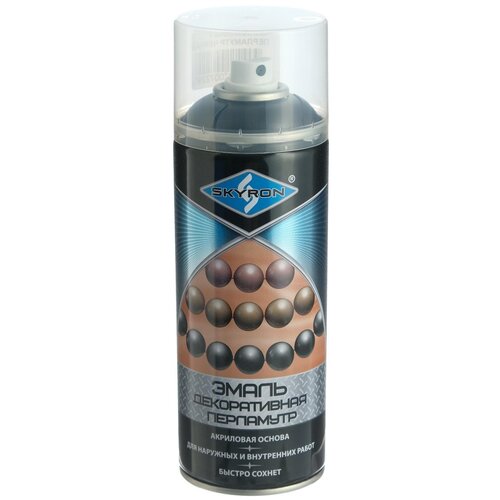 Высококачественная акриловая эмаль предназначена для декоративной окраски различных поверхностей: дерева, гипса, керамики, металла, любых типов обоев, пенополистирольных покрытий и др., а также для получения дополнительного декоративного эффекта при отделке предметов интерьера, придавая им благородный перламутровый блеск и подчеркивая их фактуру. Легко наносится на труднодоступные места. Обладает превосходной адгезией к окрашиваемой поверхности, хорошей укрывистостью и атмосферостойкостью. Образует прочное покрытие, устойчивое к воздействию воды и бытовых очистителей. Для более яркого проявления перламутрового эффекта эмалей светлых тонов, рекомендуется наносить их на поверхности, предварительно загрунтованные белой грунтовкой SKYRON.Способ применения: использовать при температуре не ниже +10 0С. Защитить поверхности, не подвергающиеся окраске. Перед использованием энергично встряхнуть баллон в течение 5 мин.после появления стука шарика.Направить в сторону от обрабатываемой поверхности и кратковременно нажимая на распылительную головку добиться равномерного распыления продукта. Наносить с расстояния 25-30 см. на сухую, предварительно зачищенную от рыхлой ржавчины и обезжиренную поверхность в 2-3 слоя, с промежуточной сушкой 10-15 мин. Время сушки на отлип при температуре +20 0С не менее 15 минут. Полное время высыхания при температуре +20 0С не менее 3 ч.