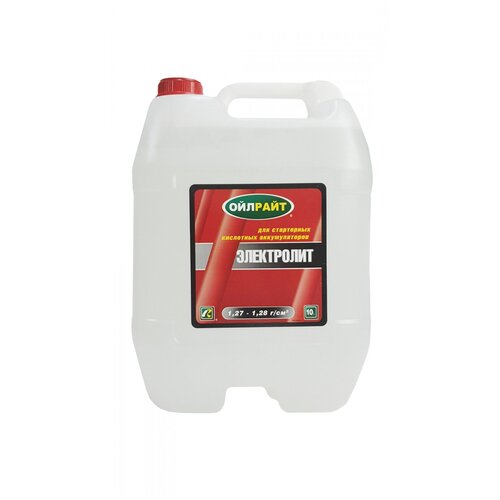 Электролит OILRIGHTГотовый к применению кислотный электролит предназначен для заливки в тяговые и стартерные аккумуляторы. Произведен на основе высококачественной серной аккумуляторной кислоты и дистиллированной воды высокой степени очистки.Отличительные особенности: продлевает срок службы всех марок кислотных стартерных аккумуляторов.