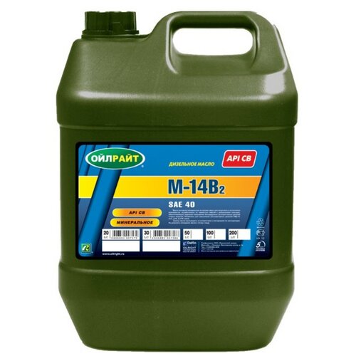 Дизельное моторное масло OILRIGHT М-14В2 40 20л - Применяется для среднефорсированных автотракторных двигателей без наддува, дизель-генераторов, насосных агрегатов, а также для двух- и четырехтактных тепловозных и судовых дизелей тронкового типа, при их эксплуатации на дизельном топливе с содержанием серы до 0,5%, а также двигателей карьерных самосвалов.Эксплуатационные свойства:Обладает хорошими моющими, антиокислительными, противокоррозионными и противоизносными свойствами.Масла группы В2 вырабатываются из малосернистых и сернистых нефтей. Они содержат композиции присадок, придающие маслам эксплуатационные свойства, обеспечивающие надежное смазывание безнаддувных автотракторных дизелей старых моделей, а также судовых, тепловозных, стационарных и транспортных дизелей среднего уровня форсирования при работе на дистиллятных дизельных топливах с содержанием серы до 0,5Индекс вязкости: 85. Кинематическая вязкость (при 100°С): 13,5-14,5Температурный интервал применения: от -15°C до +40°CМасло дизельное минеральное (API CB). Принадлежит группе В2..