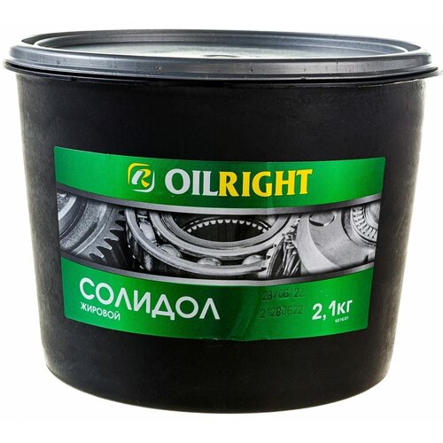 Жировой солидол OILRIGHT 2.1 кг, ведро 6016 рекомендован для смазывания и консервации узлов трения, качения и скольжения, может применяться как для открытых, так и для закрытых узлов, с использованием ручных солидолонагнетателей при температуре до -20°C. Обладает сильными вязкостно-температурными свойствами, меньше уплотняется при хранении, а также тиксотропно не упрочняется при отдыхе после разрушения.
