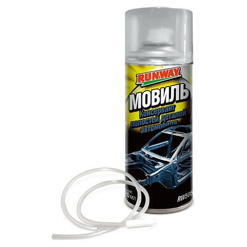 Мовиль консервант полостей деталей автомобиля (аэрозоль). Объем 520 мл. Применяется для защиты от коррозии скрытых полостей (порогов, корпусов дверей, стоек, лонжеронов и т. п.), а также для временной защиты днища кузова и арок колес.