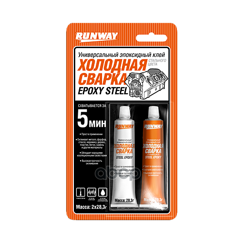 Эпоксидный Клей Runway Холодная Сварка Стального Цвета. 2*28,3гр RUNWAY арт. RW8504