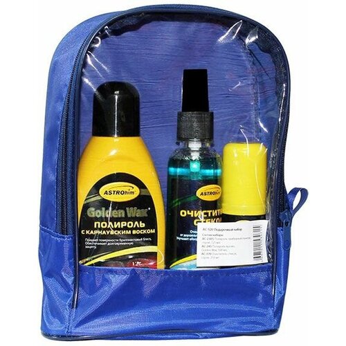 Подарочный набор Astrohim Ас-520 полироль приборной панели, полироль с карнаубским воском, очиститель стёкол 53795
