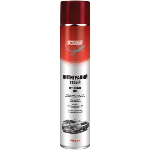 Антигравий 3ton ТС-907 серый 1000мл — соединение на основе синтетических смол, бутадиен-стирольного и винилхлоридного каучуков, наполнителей, ингибиторов коррозии и функциональных добавок в органических растворителях. Предназначен для защиты нижней части кузова автомобиля, наиболее подверженной агрессивному абразивному воздействию песка, щебня, гравия. Образует эластично-упругое покрытие, гладкое или структурированное серого цвета. Покрытие обеспечивает эффективную антикоррозионную защиту и дополнительную шумоизоляцию кузова автомобиля.применение:1. Перед применением энергично встряхнуть баллон.2. Обрабатываемую поверхность перед нанесением очистить от грязи, пыли, ржавчины и старого отслаивающего антикоррозийного покрытия, промыть и просушить.3. Нанести материал на поверхность ровным слоем с расстояния не менее 20 см. При нанесении и высыхании материала температура окружающего воздуха, поверхности и самого материала не должна быть ниже +10°С и выше +30°С.При низких температурах давление в баллоне понижается, в результате чего распыление содержимого может быть затруднено или не происходить совсем. Для восстановления первоначальных свойств рекомендуется подержать баллон при комнатной температуре.