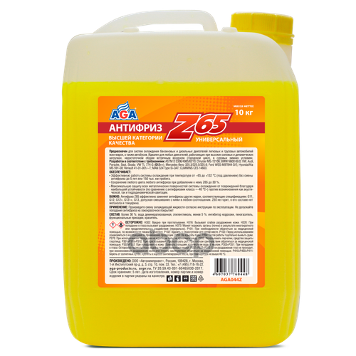 | 2946 ₽ | 10.04.2025 Антифриз AGA Z65 G12++ Желтый -65°С 10 л | ||