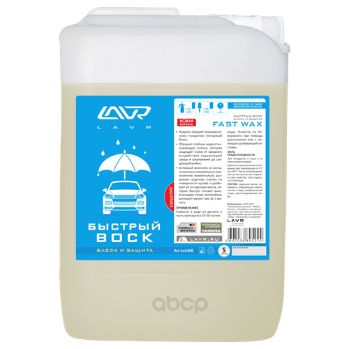 Полироли и покрытия для кузова LAVR Ln1450 Быстрый воск LAVR Концентрат 1:50-100, 5 л
