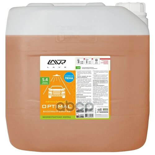 Автошампунь Optimal Базовый Состав 5.4 Концентрат 1:30 - 60, 23 Кг Ln2319 Nsii0014247425 LAVR арт. LN2319