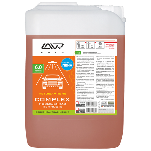 Ln2322_автошампунь! Для Бесконтактной Мойки, Сomplex, Повышенная Пенность, 6.0 (1:50-70), 5,8 Кг Lavr арт. LN2322