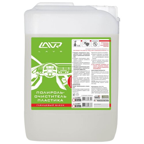 Полироль-Очиститель Пластика "Глянцевый Блеск" Glossy Plastic Polish (1:1), 5л Ln1467 LAVR арт. Ln1467