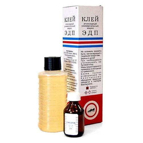 Клей эпоксидный универсальный марки ЭДП 140гр - предназначен для склеивания металлов и их сплавов, древесины, керамики, фарфора, стекла, - декоративно-облицовочных и других материалов, - а также для заделки пор, трещин, раковин при ремонте домашнего инвентаря или автомобилей. Применение: В быту для ремонта предметов интерьера, корпусов бытовой техники и акустических систем, ванны, сантехники, баков стиральных машин. Клей ЭДП универсальный отлично подойдет для ремонта спортинвентаря, также применяется для ремонта и изготовления стеклопластиковых поверхностей, ремонта и изготовления бамперов, корпусов лодок, автомобилей, моделирования, производства наливных полов Свойства: Характеризуется очень высокой механической прочностью, малой усадкой, высокой адгезией к материалам, влагостойкостью, отличными электроизоляционными свойствами