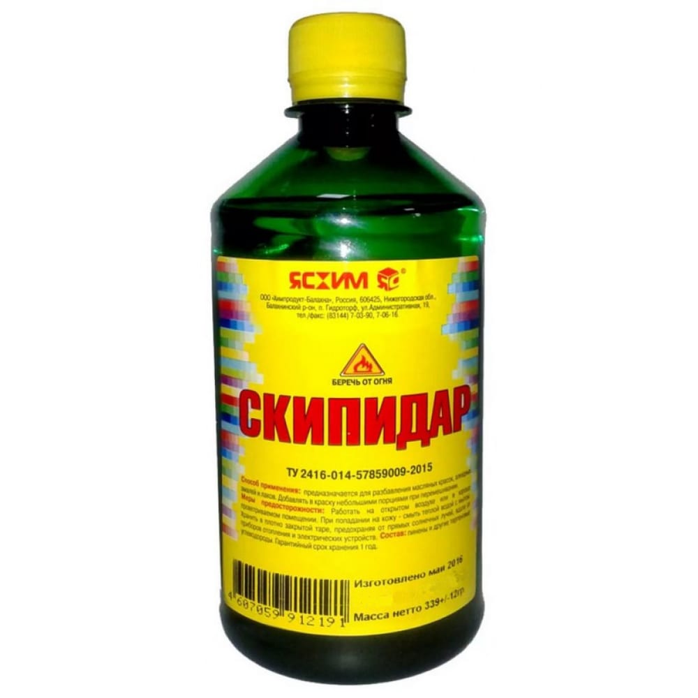 Представляет собой сложную смесь эфирных масел, получаемых из различных частей древесины хвойных пород. Его применяют как растворитель для смывки старой краски. Скипидар предназначен для использования в качестве разбавителя масляных красок, алкидных лаков, эмалей. Добавляют в различные составы, в том числе в сочетании с другими органическими растворителями. Скипидар горюч, летуч, при работе с ним требуется выполнение правил безопасности.
