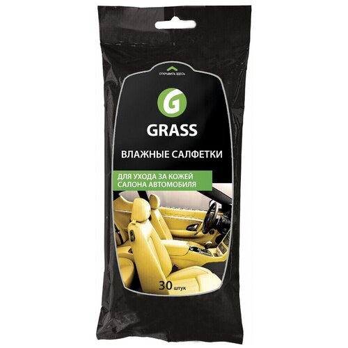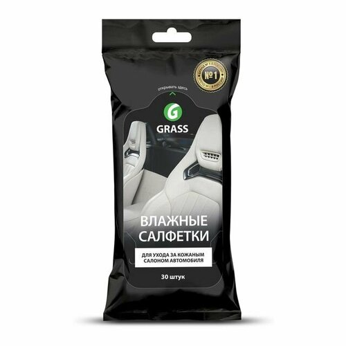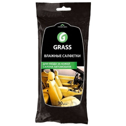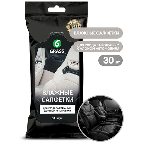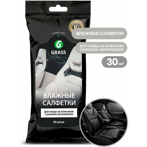 Влажные салфетки Grass для ухода за кожей салона автомобиля, 30 шт.