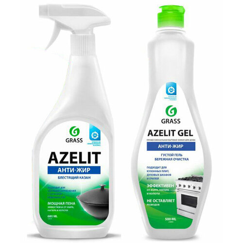 Набор GRASS Антижир Azelit для блестящего казана 600мл + Чистящее средство для кухни "Azelit-gel" флакон 500 мл