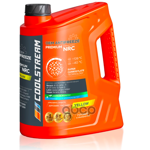 Антифриз Coolstream Premium 40 (Nrc) 5Кг, Жёлтый Renault (41-01-001/-- T), Renault (41-01-001/--S Type D), Lada Vesta, Lada L.