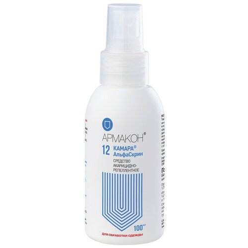 Средство акарицидно-репеллентное камара АльфаСкрин от Армакон - это надежное решение для защиты от таежных и лесных клещей, блох и кровососущих насекомых.Комплексное действие средства обеспечивает репеллентная субстанция, которая препятствует посадке клещей и кровососущих насекомых на поверхность одежды. Акарицидный компонент обладает нервно-паралитическим действием на клещей, дезактивируя их после посадки.Средство камара АльфаСкрин относится к первой категории эффективности репеллентных средств. Время защитного действия составляет от клещей и блох до 15 суток, а от насекомых - до 20 суток при условии хранения обработанной одежды в закрытом полиэтиленовом пакете.Эффективность средства подтверждена ниидезинфектологии, а его эффективность составляет более 98%.Средство акарицидно-репеллентное камара АльфаСкрин предназначено для обработки одежды и других изделий из ткани, таких как занавеси, противомоскитные сетки, палатки, снаряжение и т. п.Средство выпускается в виде спрея объемом 100 мл и весом 98 г. В упаковке содержится одна упаковка средства.
