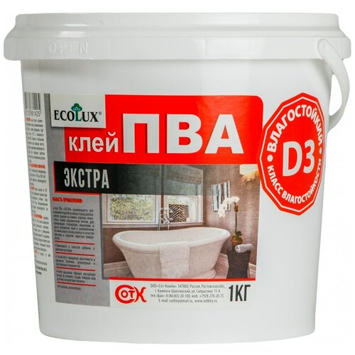 ECOLUX Клей ПВА экстра влагостойкий D3 1,0 кг 4607133681425