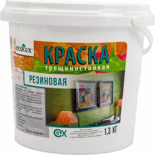 Краска резиновая для стен крыш фасадов внешних и внутренних работ белая, Ecolux 1.3кг
