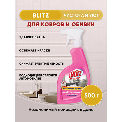 Универсальное чистящее средство для чистки ковров и обивки спрей BLITZ (блиц) предназначен для пенной чистки и антистатической обработки ковров, ковровых покрытий (ковров, ковролина), обивки мягкой мебели, салонов автомобилей. Очиститель ковров, паласов и автомобильных сидений удаляет даже самые стойкие загрязнения, благодаря особой мощной формуле спрея. Средство для уборки действует деликатно, освежая яркость красок, не оставляя следов обработки. Действует как антистатик - после его применения устраняется статическое электричество с поверхности мебели и ковров. Средство для чистки ковров и мягкой мебели подходит для чистки ткани велюра из искусственной кожи, пластика и стекол. Жидкость для очистки в концентрированном виде применяется как пятновыводитель удаляет пятна от вина сока крови жира и других загрязнений, устраняет неприятный запах. Чистящее средство для машины поможет в мытье сидений и ковриков. Спрей для уборки разработан с учетом безопасности для поверхностей, на которых он используется. Способ применения: нанести пену средства н очищаемую поверхность и тщательно почистить щеткой. Остатки средства удалить щеткой, смоченной в воде или обработать поверхность моющим пылесосом. Перед применением проверить стойкость окраски текстильного изделия к действию средства в незаметном месте.